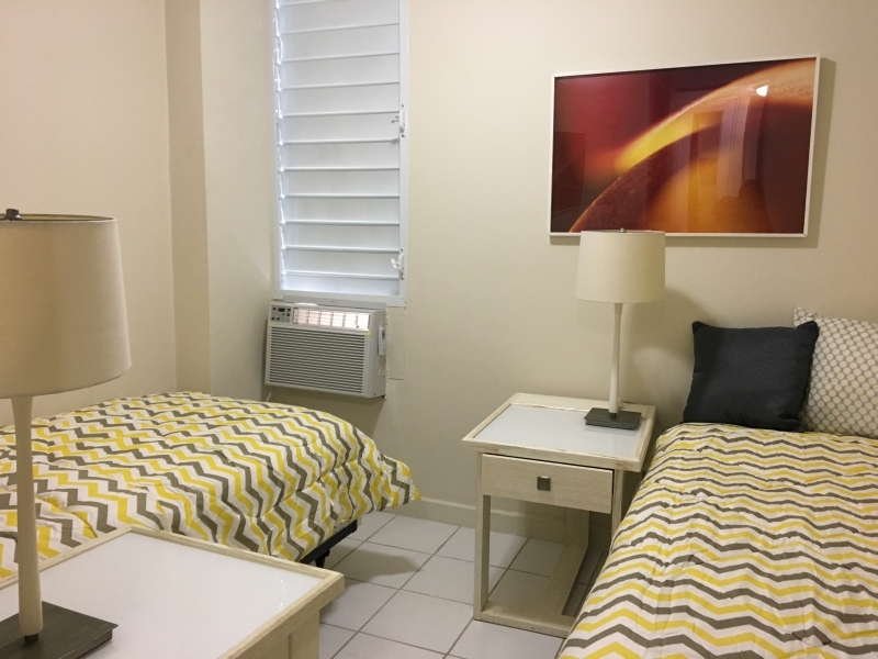 VENDIDO . 2 bedroom apartment on the 3rd floor is remodeled. Very pretty. 1st Room with Queen bed air conditioning, night table, closet with mirror doors. 2nd Room with 2 Twin beds with A / C, bedside table, closet with mirror doors. 1 bathroom, dining room with table for 4 people. Room equipped with a 2 Twin sofa-bed, TV, study table, large windows that give an excellent view, lots of lighting and fresh air. The kitchen is very well equipped with a stove. Fridge, microwave, washer-dryer, all the necessary utensils for cooking, is more complete than a hotel. The apartment offers 1 parking with beeper. The rent includes water, electricity, internet and TV. Requisitos para solicitud de renta: carta de empleo, últimos talonarios de 3 meses de ingresos o evidencia de ingreso, reporte de crédito y certificado de antecedentes penales. Fianza y un mes de renta. Description: Building with large green areas with beautiful trees, space to walk, exercise, and has half a basketball court. Short term rent 3 months or long term. Very comfortable and practical for professionals, couples or group of 2 or 3 foreign students-Travelers Location : Quintana A Condominium, Calle Francia # 555 San Juan, PR 00917 Near bus stop, train station, hospitals, universities, EDP University , Mutual Auxiliary Hospital, Veterans Hospital and Medical Center. Banking area of Hato Rey, shopping centers, Plaza Las Americas, Old San Juan, Miramar, Condado and Isla Verde. The airport is 10 minutes away and 20 minutes from the spas and beaches. Mobilization: It is very easy to move anywhere because it is a few minutes walk from two train stations. Domenech and Piñero train stop. It has a few bus stops in front of the condominium. Call: 787-562-7743 or send text. You can communicate by WhatsApp Email: eva@chusanproperties.com You will receive very important information to rent this apartment.